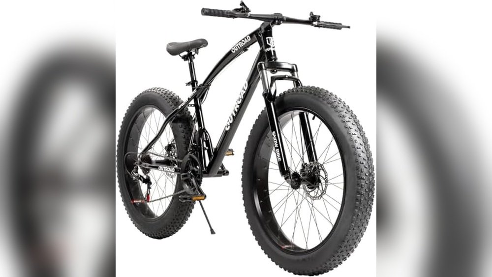1. Outroad Fat Tire Mountain Bike with 26 inch Wheels, 21 Speed with High Carbon Steel Frame, Double Disc Brake and Front Suspension Anti-Slip Bikes,Black