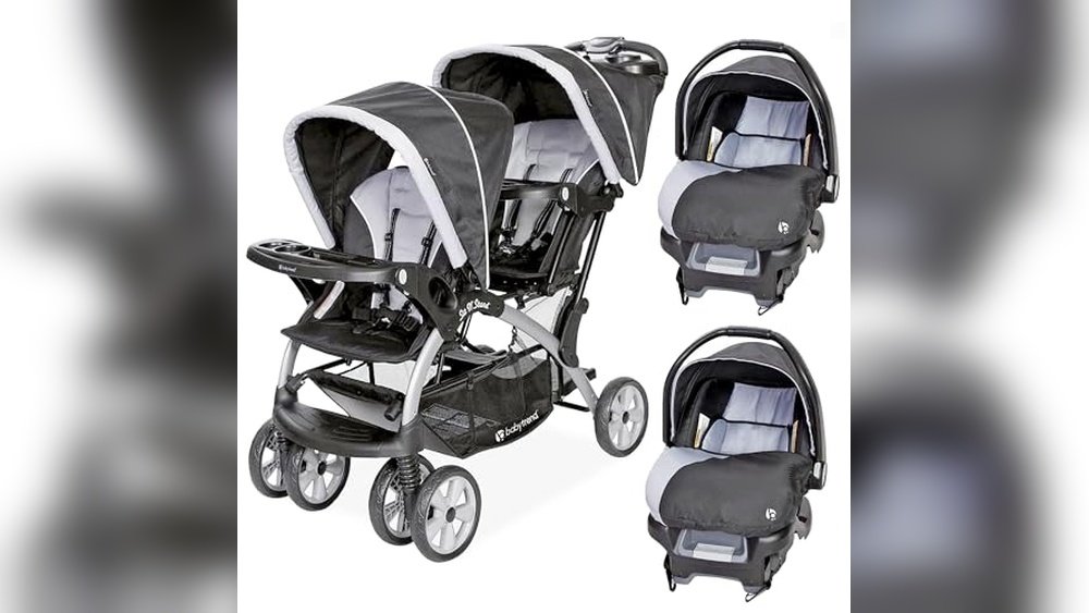 1. Baby Trend Infant and Toddler Double Stroller & 2 Car Seat Combo, 3 Pc Set, Stormy – Portable and Lightweight Stroller Duo and Car Seat Travel System Tandem