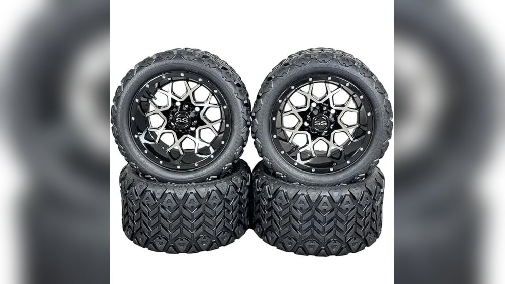 This set includes four 12-inch deep dish wheels with all-terrain tires. Designed to fit popular golf carts like EZGO, Club Car, and YMH. Tires measure 20×10-12, offering strong grip on various surfaces. DOT certification ensures safety and quality on the road. Durable and sturdy, these wheels improve your cart’s performance and look. Easy to install for a quick upgrade.
