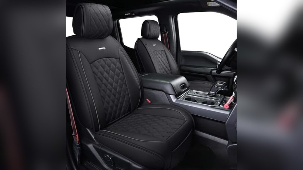These car seat covers fit my Ford F150 perfectly. The black leather looks great and feels strong. Water spills wipe off easily, which is very handy. Installation was quick and simple without any tools. The covers protect my seats well from dirt and wear. They also add a nice, clean look to my truck’s interior. Comfortable for long drives and easy to keep clean. Definitely worth buying for Ford truck owners.
