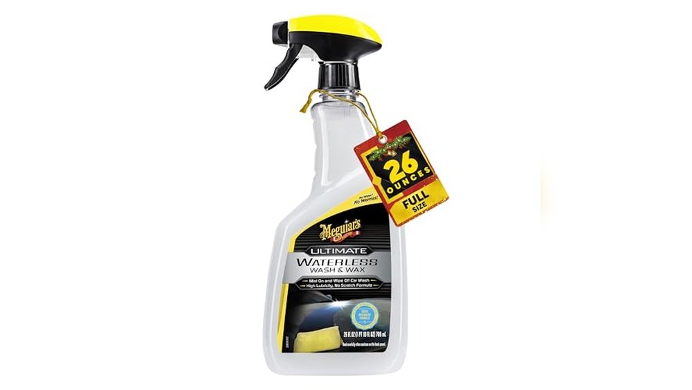 1. Meguiar’s Ultimate Waterless Wash & Wax, Scratch-Free Cleaning Spray that Cleans and Protects Without Water, 2-in-1 Detailer for Shine, Cool Car Gifts for Men and Women, 26 Oz