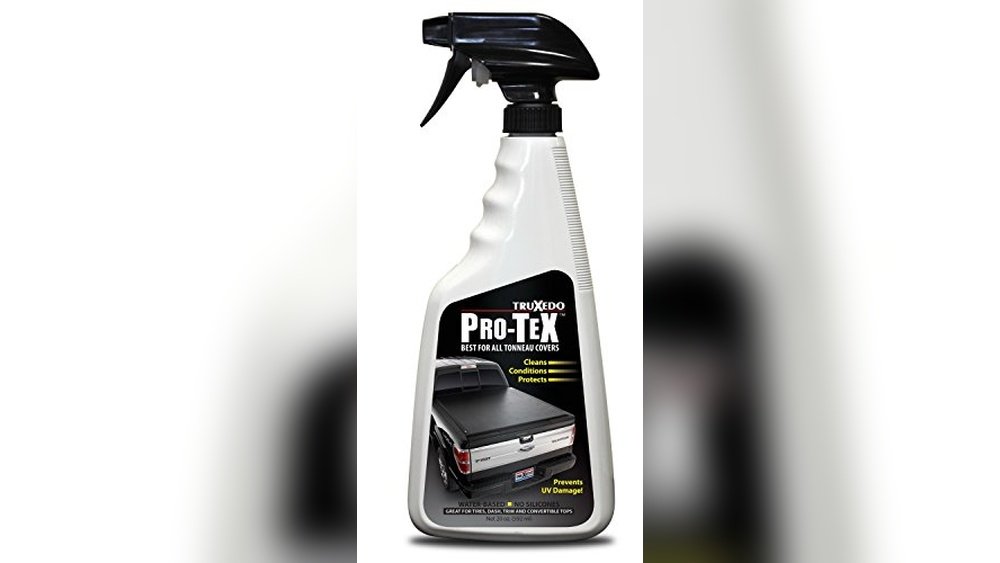 RealTruck TruXedo Pro-TeX Protectant Spray keeps your truck bed cover clean and protected. It helps stop fading and cracking from sun damage. Easy to apply, it leaves a smooth, non-sticky finish. Perfect for maintaining a like-new look on your truck accessories. This spray works well on vinyl, rubber, and plastic surfaces.
